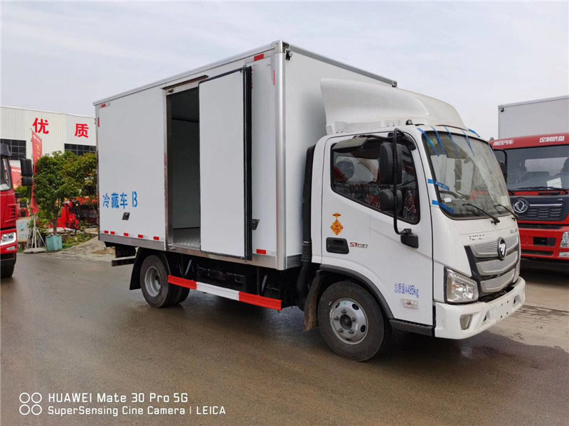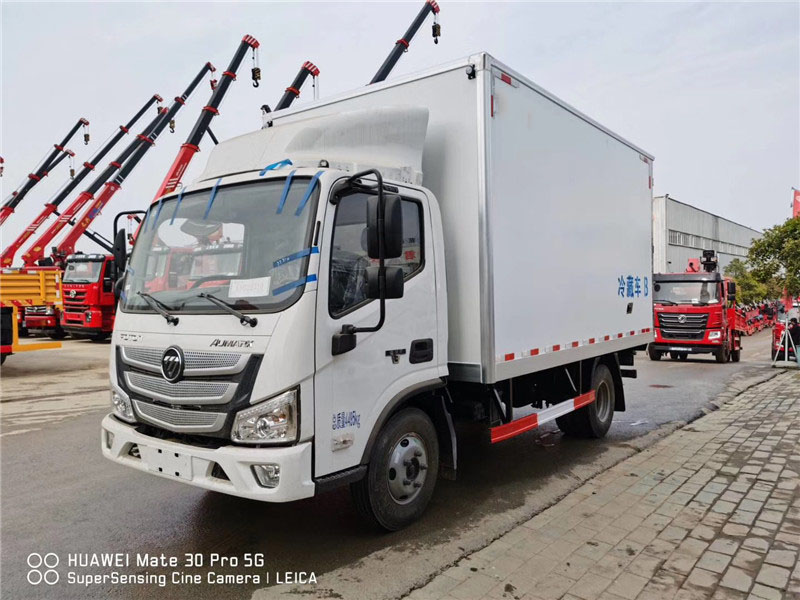 福田歐馬可S1冷藏車(國六),整車型號:BJ5048XLC-F3,底盤型號:BJ1048V9JD6-F3,整車尺寸:5995*2340*3220mm,箱體尺寸:4080*2***2**mm,功率/馬力:96KW/131馬力,2780排量,福田康明斯發動機(F2.8NS6B131) 7.00R16LT輪胎 福田奧鈴聯合戴姆勒-奔馳 康明斯開發的中高端輕卡速運(原CTS-1880)可翻轉1880寬體金屬漆駕駛室 康機獨有EBP節油開關 5檔ZF釆埃弗/萬里揚變速箱 5噸后橋 前照地鏡 動力轉向 多功能四向調節方向盤 無骨雨刷 空調 定速巡航 方向助力 氣剎(帶斷氣剎)前盤后鼓式帶威伯科ABS 中控鎖+電動玻璃+遙控鑰匙 剎車自調臂 自動大燈帶可調高度 國六時代環保達標車型,軸距:3360mm。