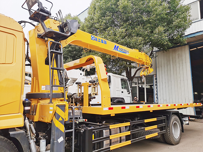 陜汽軒德牌4*2一托二清障帶吊, 軒德X6半浮駕駛室,玉柴240發動機,法士特8檔變速箱,5600mm軸距,5噸前橋、10噸后橋,電動車窗,中控鎖帶遙控鑰匙,氣囊主座椅,原裝空調,200L油箱,280雙層車架,10.00R20輪胎。